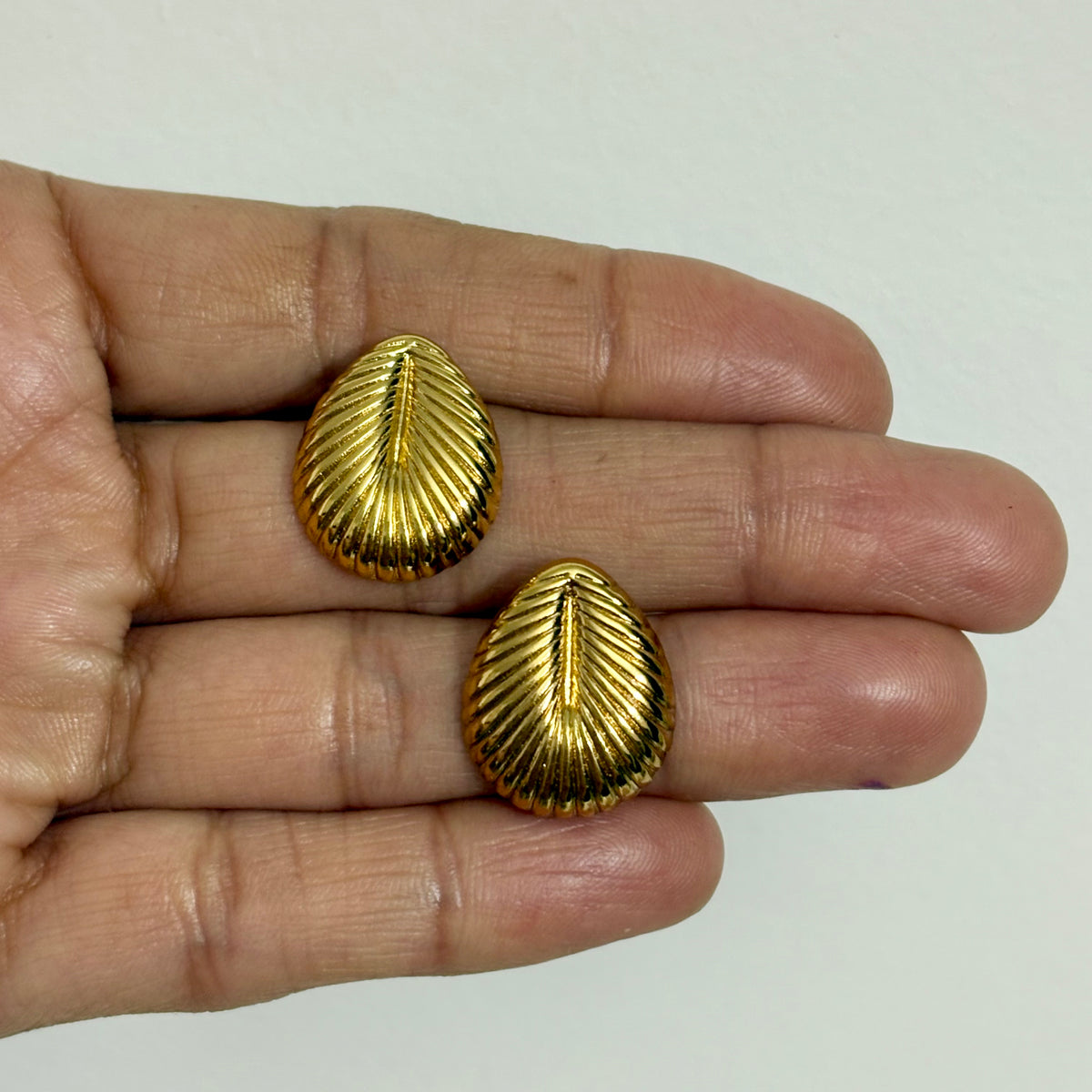 These elegant gold-toned studs are designed to resemble a gracefully unfurling petal or a stylised tropical leaf. The uniquefine-ribbed texture catches the light, giving the piece a dimensional, radiant shimmer that elevates the classic stud silhouette.